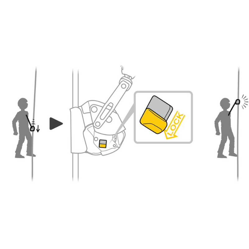 In the event of a sudden acceleration or shock load, the ASAP LOCK instantly engages and locks onto the rope, arresting the fall and protecting the user. Its integrated locking function allows the device to be immobilised when needed, helping to reduce potential fall distances and improve working stability during positioning tasks.