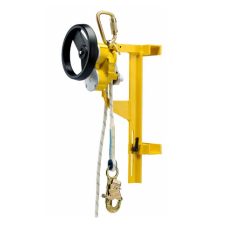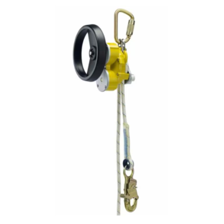 The R550 is made from strong, corrosion-resistant materials, yet remains lightweight and compact, making it easy to carry and set up. It includes a built-in rescue lifting hub for assisted rescue when a worker cannot descend on their own. Just lower the device, connect to the person, and bring them down safely. Some models also include an integrated pigtail and cam cleat for added control.