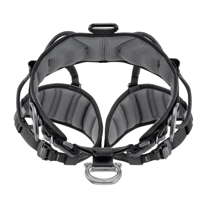 Its semi-rigid waistbelt and leg loops are contoured and padded with breathable foam, providing lasting comfort during suspension or movement. The metal side D-rings fold down when not in use to minimise snagging, and the central ventral D-ring offers secure attachment for a PODIUM or LITEPOD work seat, or a lanyard via the integrated textile loop.