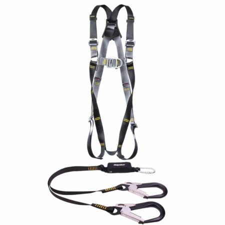The RIDGEGEAR RGHK4 Scaffolder’s Kit includes a twin-leg lanyard, harness, and connectors for safe, continuous work at height. Available to purchase or service.