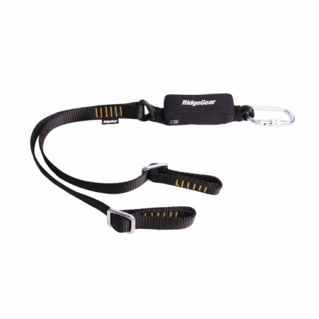 The RIDGEGEAR RGL16 is a twin-leg adjustable lanyard with a shock absorber, ideal for safe movement between anchor points at height. Available to buy or service.